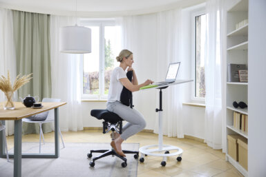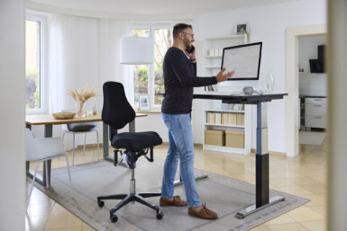 Bürostuhl und ergonomischer Schreibtisch gehen Hand in Hand. Erst durch ihr Zusammenspiel kann ein ergonomischer Arbeitsplatz verwirklicht werden. Das wichtigste Kriterium eines ergonomischen Schreibtisches: die Höhenverstellbarkeit. Ein sogenannter Lifttisch bzw. Höhenverstellbarer Arbeitstisch kann flexibel in der Höhe verstellt werden – und erlaubt es, auch im Stehen zu arbeiten. Ein regelmäßiger Wechsel aus Sitz- und Stehphasen wiederum wirkt sich gesundheitlich langfristig besonders positiv aus.